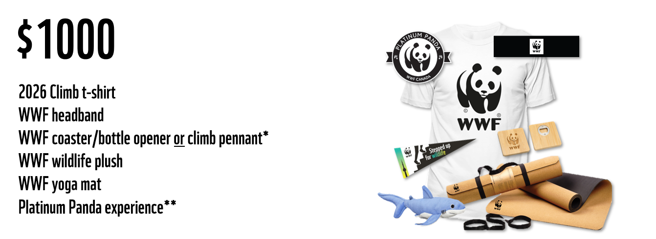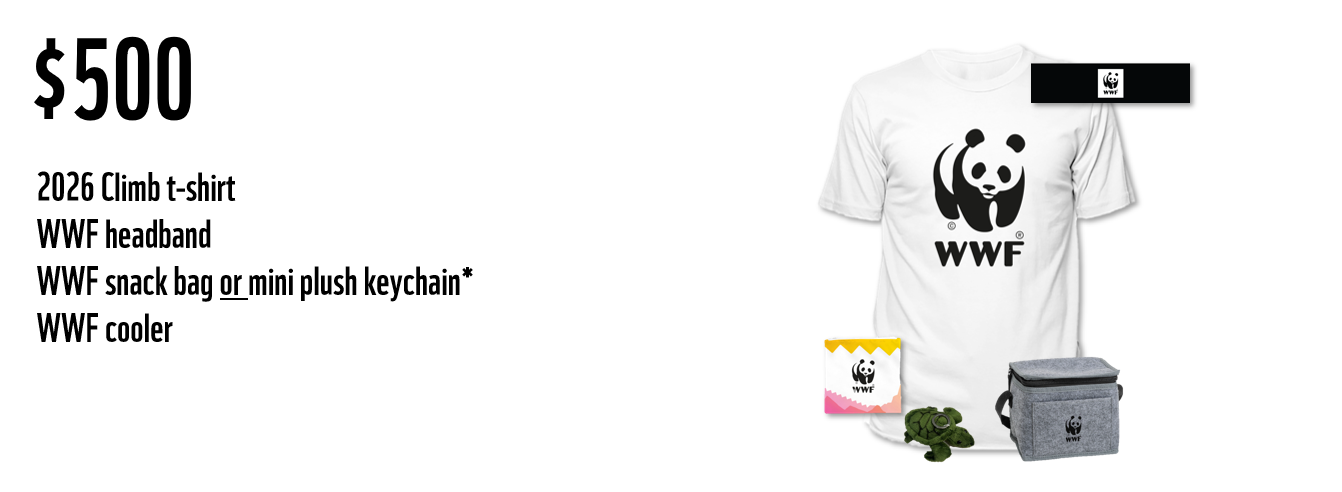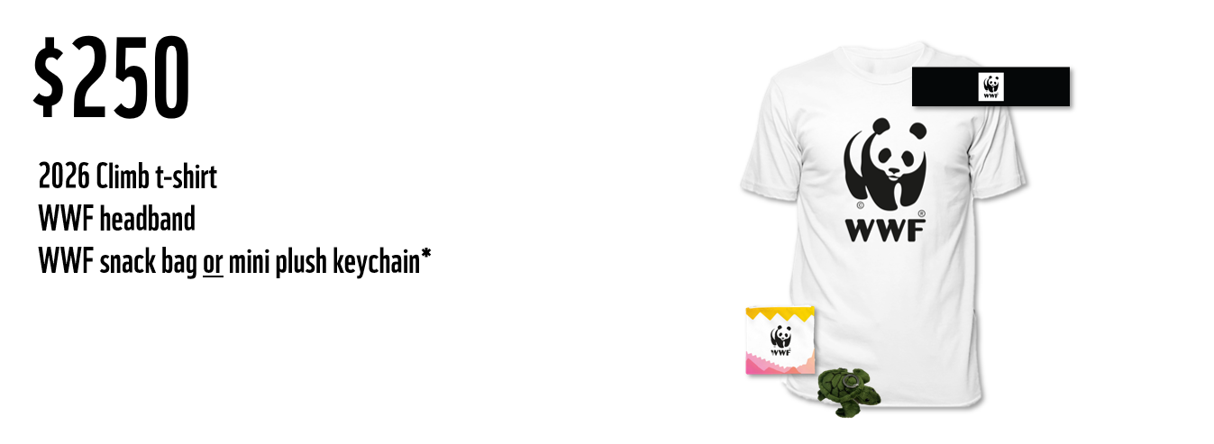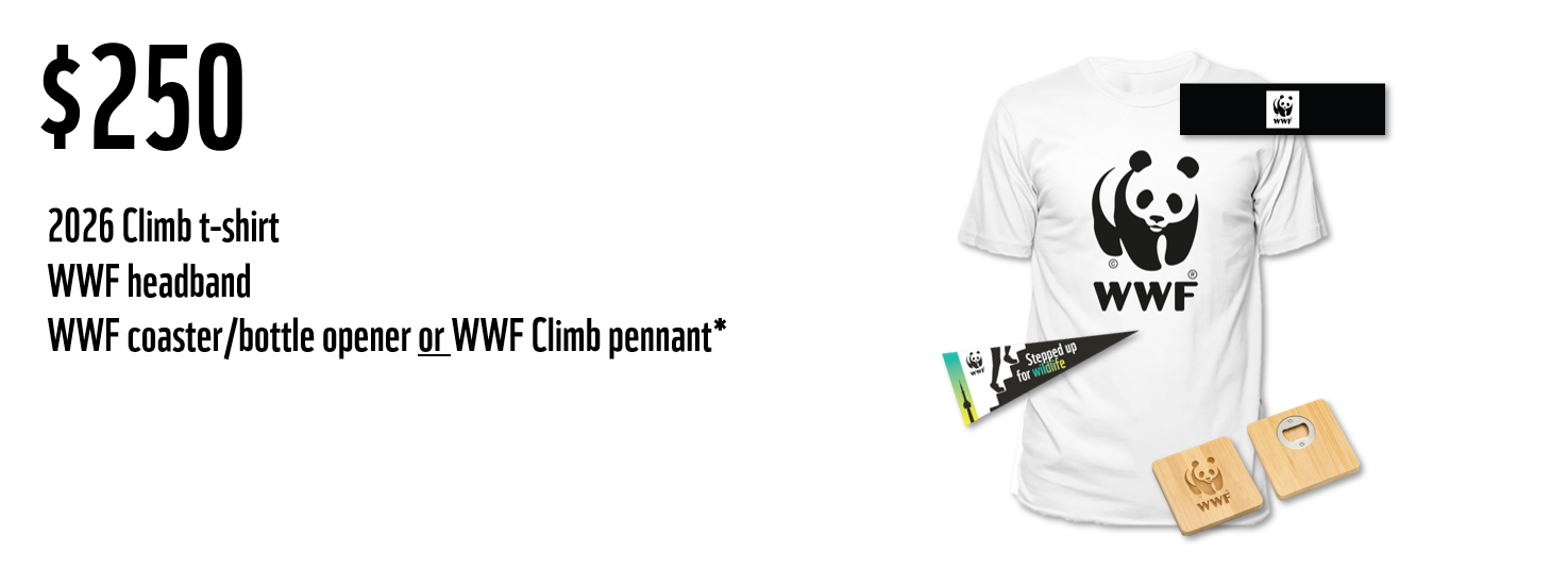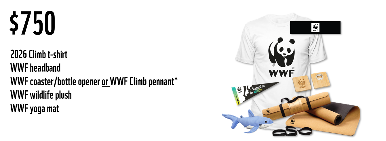 When you choose to participate in the WWF Climb for Nature, every dollar you raise and every step you take is a step towards a brighter future for nature and wildlife. What’s more, you can earn some amazing rewards when you meet and exceed your fundraising goals!