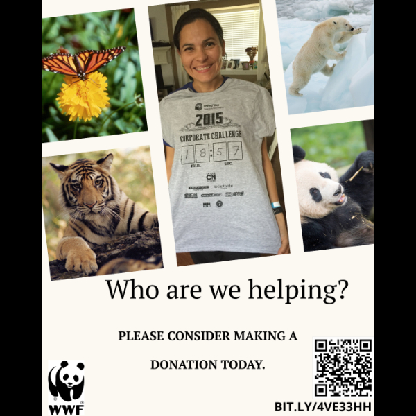 While I am doing my part, I am counting on you to help me reach my fundraising goal. The funds I raise will help support WWF-Canada's efforts to restore nature, reverse wildlife loss and fight climate change.